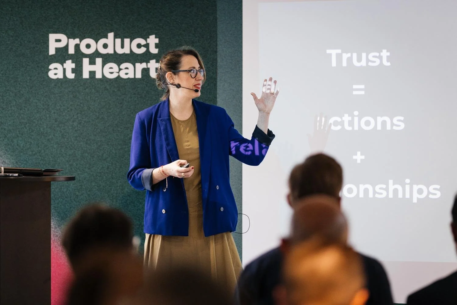 Lisa Kolbe and André Hubert called out some of the contradictions that product leaders often present—even if they don’t intend to. Things like saying that you empower your team, when really you end up giving in to pressure from stakeholders or internal friction. But this session wasn’t about judgment—it was designed to help attendees move beyond the “say–do” gap and navigate these challenges with integrity and less stress.
