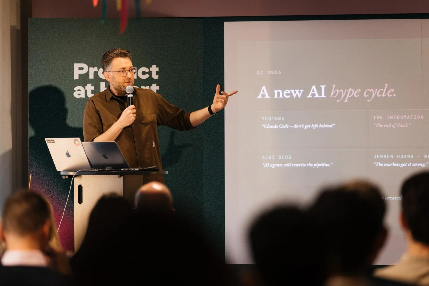 Björn Waide posed critical questions all product leaders should be asking today when it comes to product management in an AI native world: Where does the PM role end and engineering begin when AI handles implementation? How do you restructure teams when the bottleneck shifts from building to deciding? And what new skills do product leaders need to develop, in themselves and in their teams, to stay relevant?