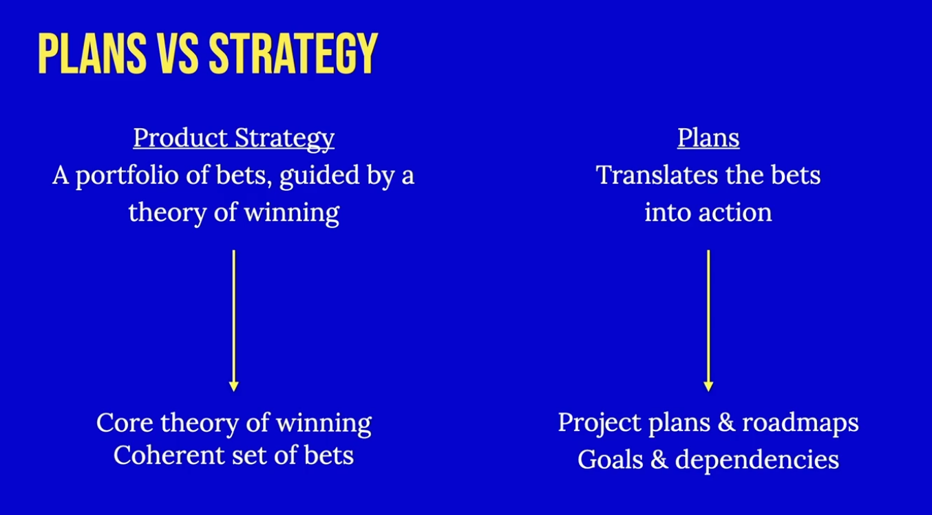 There’s a difference between plans and strategy. While strategy is based on a portfolio of bets and a theory of winning, plans involve translating those bets into specific actions.