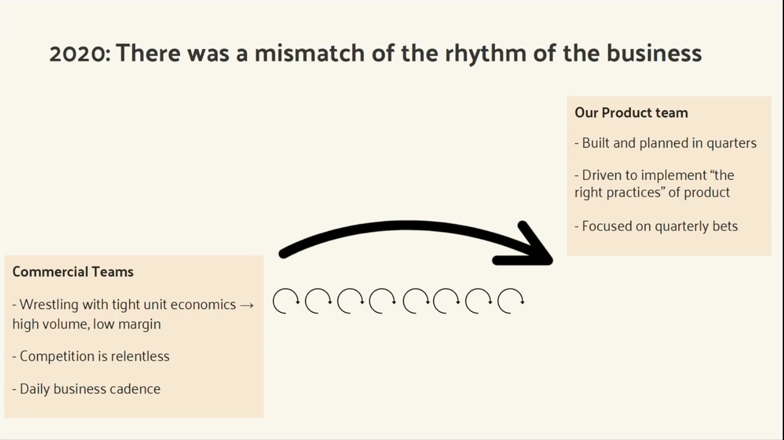 This mismatch led to an erosion of trust, where the commercial teams felt like product teams didn’t care about them.